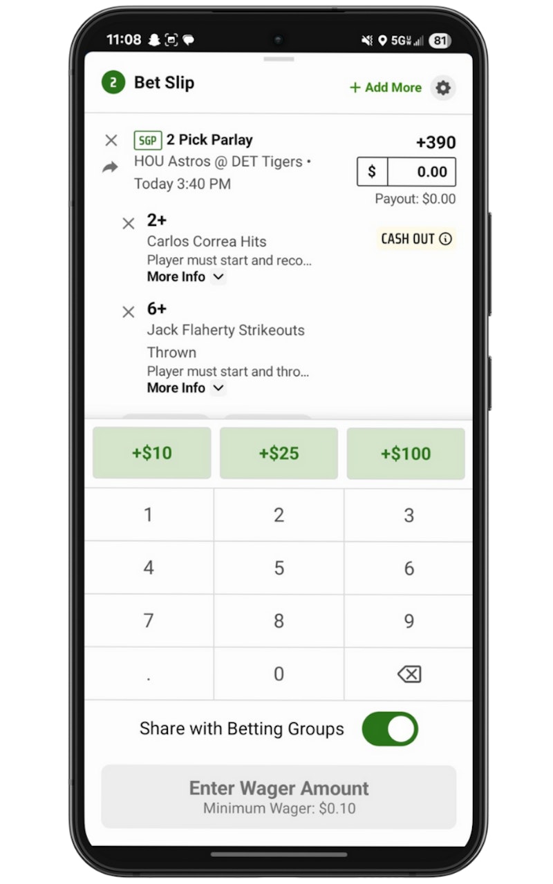 Parlays and Same Game Parlays work a little differently. Rather than canceling your entire ticket, DraftKings will remove the injured player’s leg and recalculate the odds based on the remaining selections. That way, you still have the opportunity to win if the other legs hit.