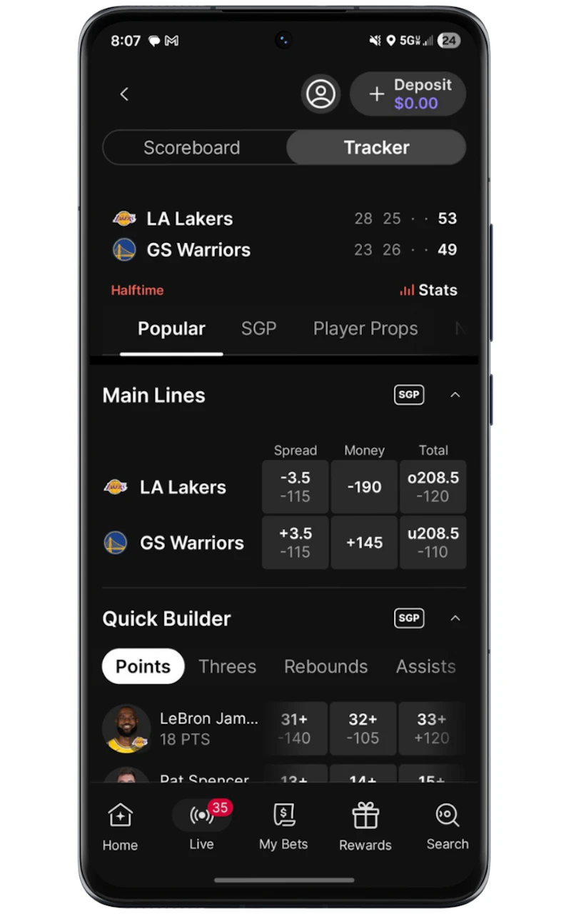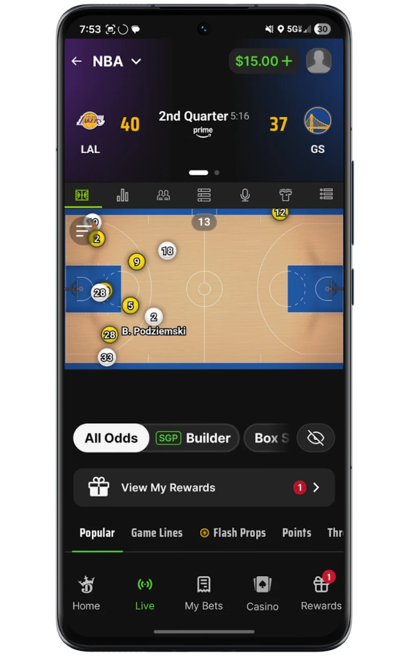 DraftKings and FanDuel also performed well overall, but each had noticeable flaws. DraftKings offers the deepest markets out there, but frequent market locks can make it tough to build live bets. FanDuel is one of the easiest apps to use, but its live markets can feel a bit limited compared to others near the top.