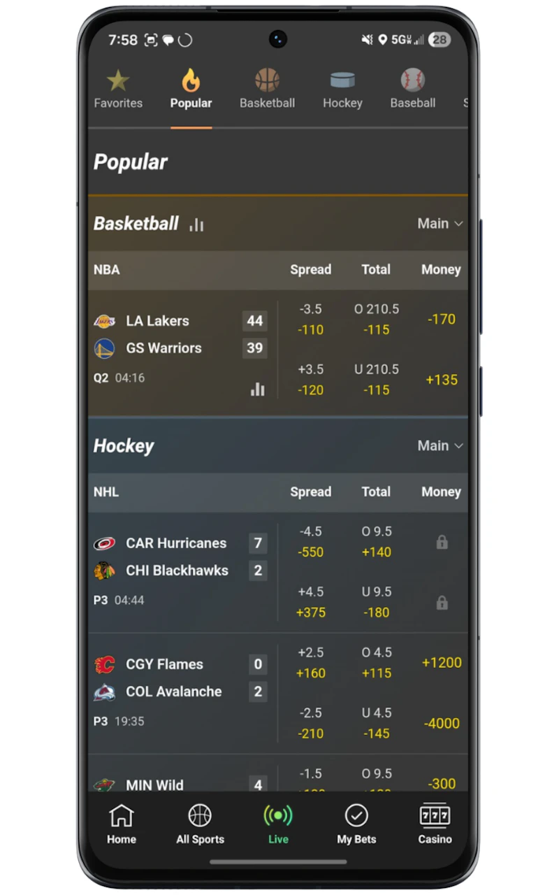 To evaluate live betting across each app, we tracked multiple games in real time and focused on how each platform handled fast-moving situations.