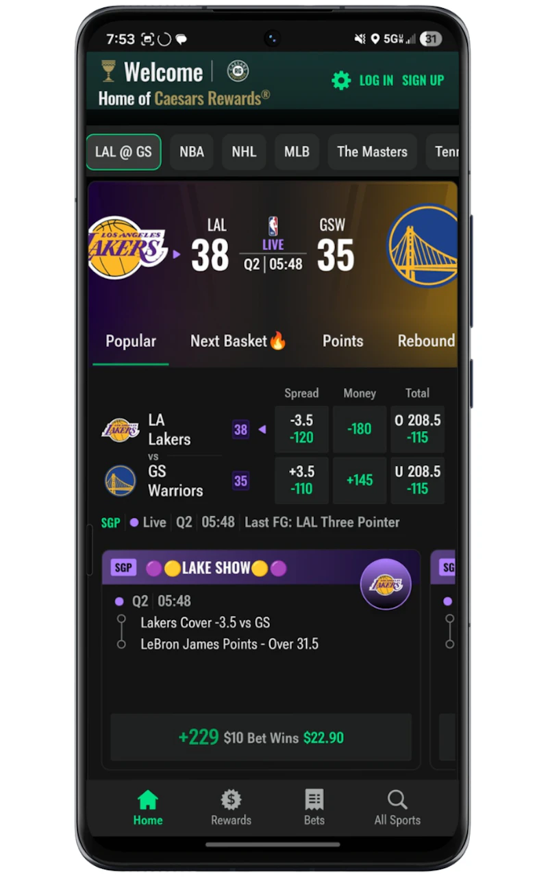 What Stood Out: Caesars holds up well in a couple of key areas, especially when it comes to market stability and bet slip performance. Markets tend to stay open more consistently than some other apps, and the bet slip responds quickly when building out wagers. That gives it a more reliable feel during live action. Odds update speed is solid but not standout, and market availability is a bit limited compared to the top apps. Navigation is where it struggles the most, as moving between games and markets can feel a bit clunky. Overall, it’s a steady option, but not one that really separates itself.