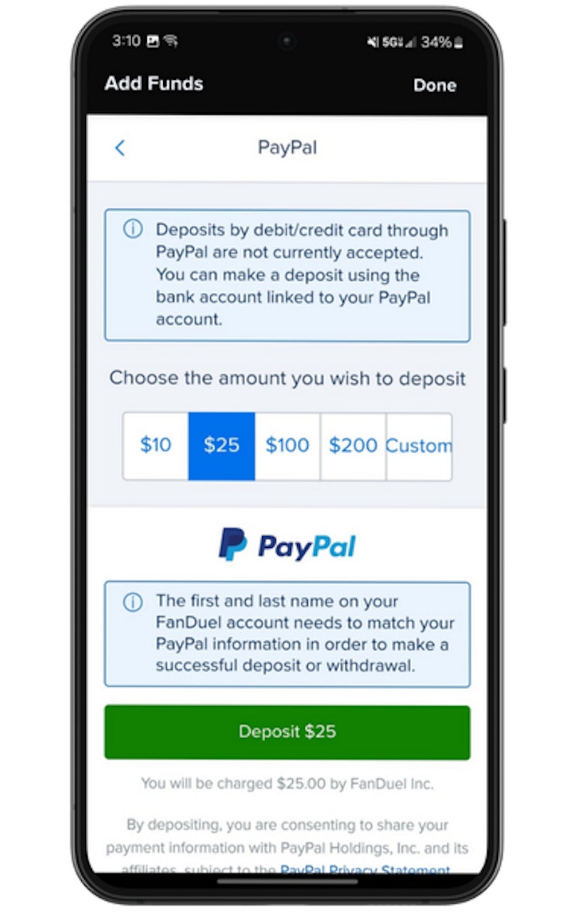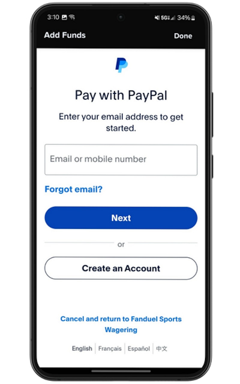 Using PayPal on FanDuel Sportsbook