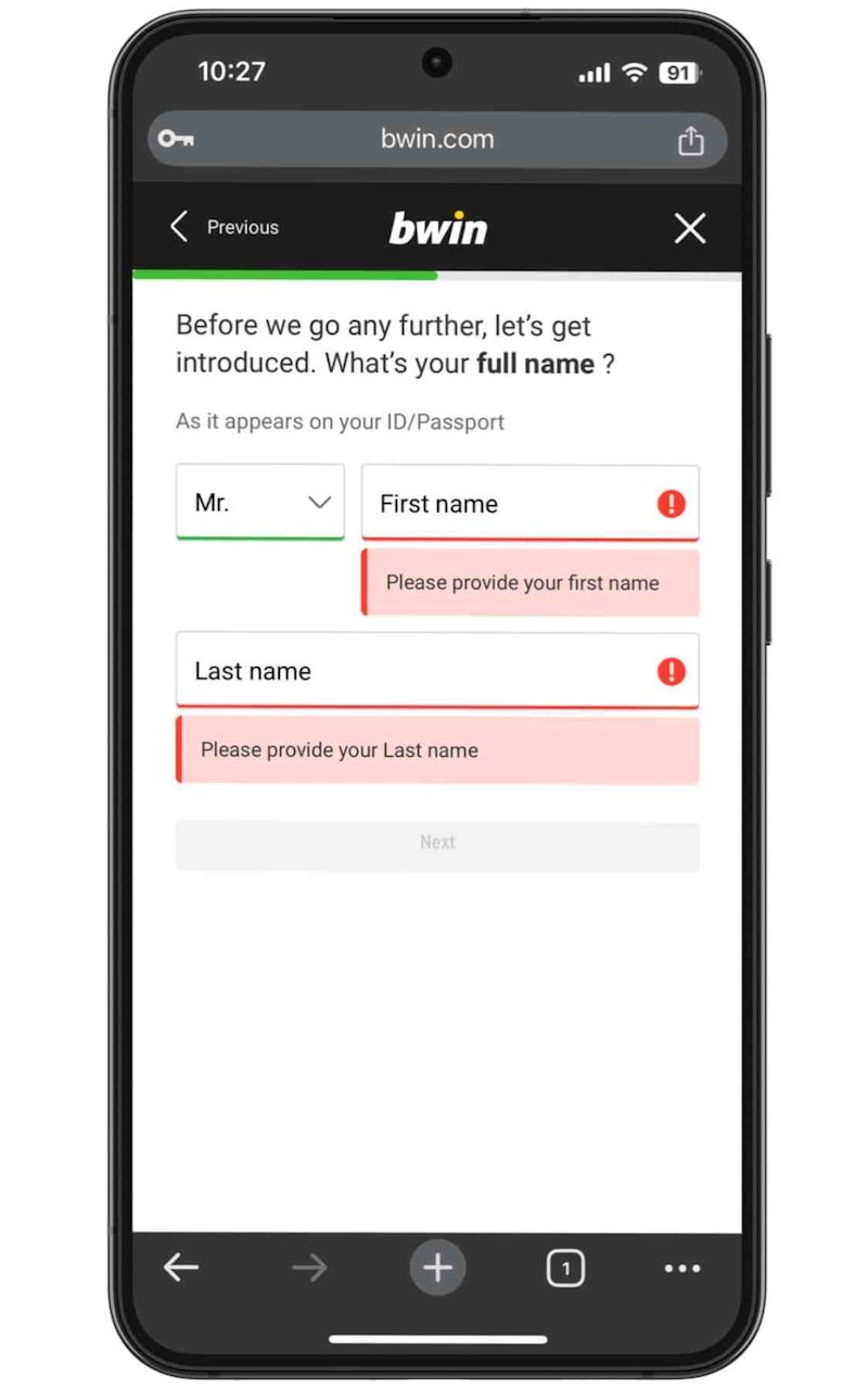 Before downloading the Bwin app, you will need to go to the Bwin website to register and create an account.