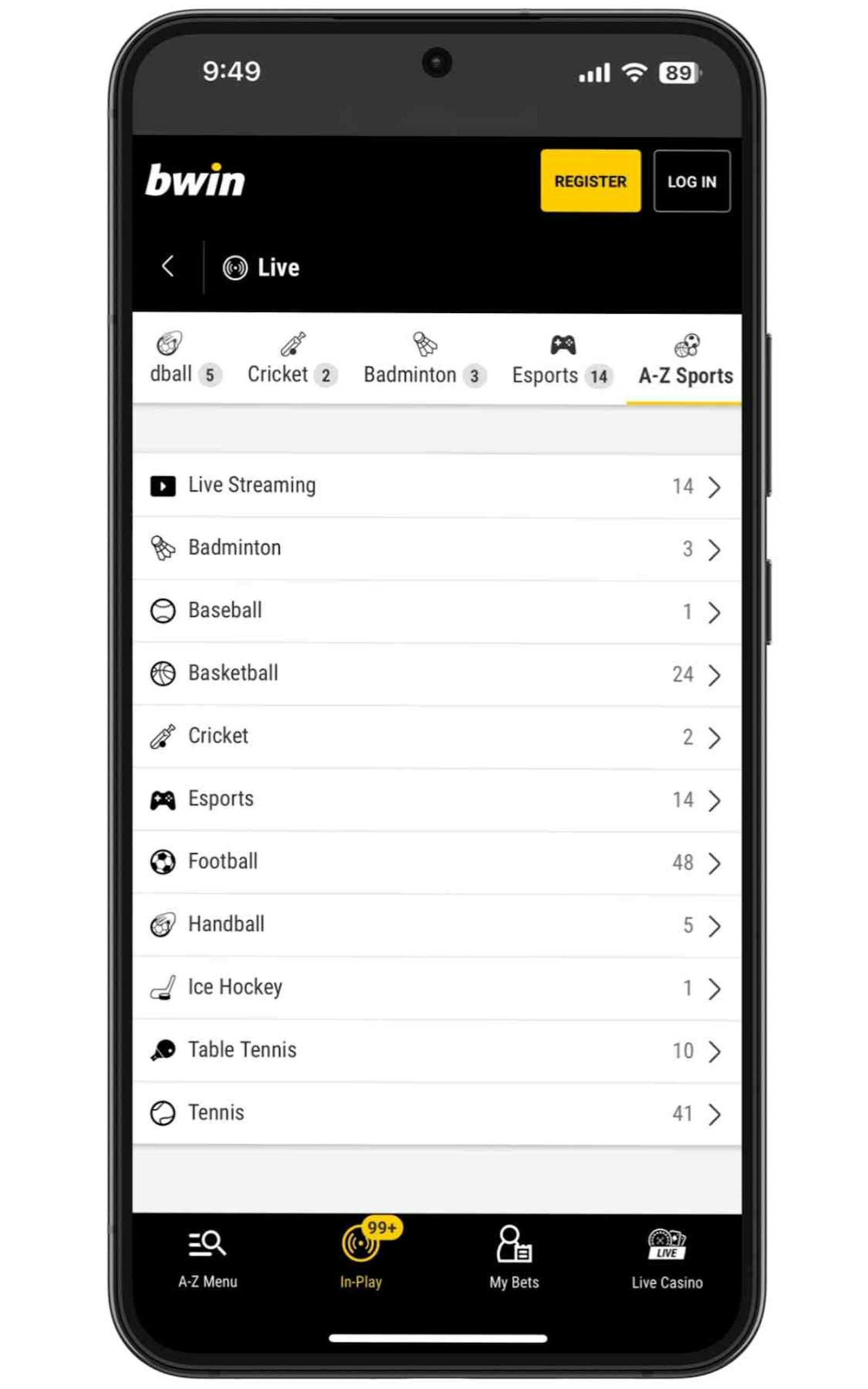 Yes, Bwin has a great live streaming section on the mobile app. Users will need to have funds deposited or have recently placed a bet to access the streaming. There's an impressive amount of sports available for streaming, including hockey and soccer, as well as more niche sports like table tennis.