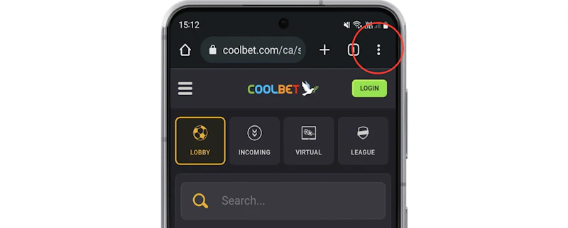 Once you've signed up and are on the Coolbet webpage, look for the three dots on the top right of your phone - see the step one photo if you can't find them!