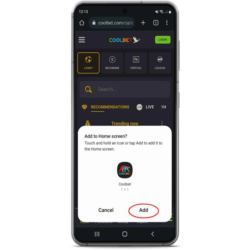 If you select 'add to home screen you'll be prompted to confirm whether you want to add Coolbet to your home screen, and you'll see a preview of what the icon will look like on your phone.