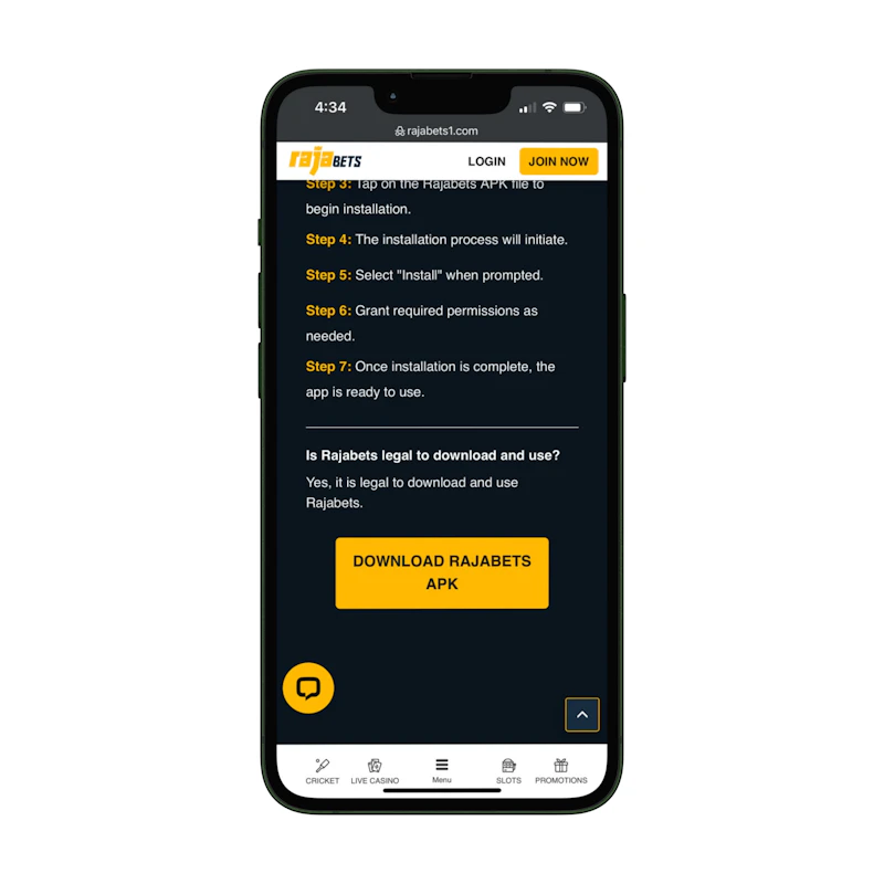 You can download the Rajabets Android APK directly from the website. Follow this step-by-step guide to complete your download.
