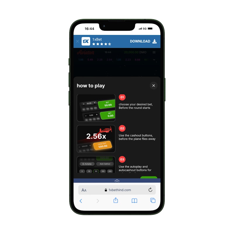 If you want to play Aviator on an iOS device, you need to follow the same steps to complete the download of the betting app on your iPhone.