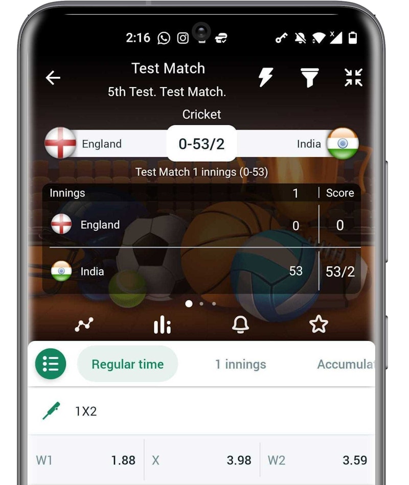 The Betwinner app provides some nice odds for the cricket events and possibilities to bet on different outcomes and markets.