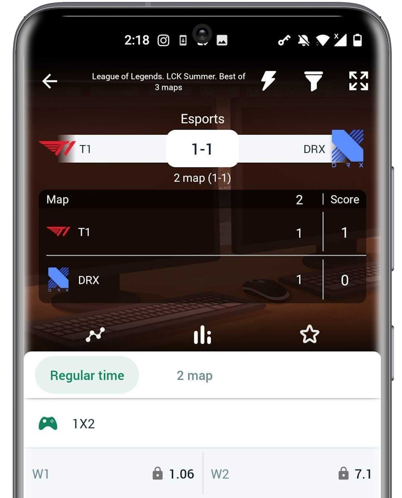 Explore the E-sports section in the Betwinner app by clicking below.