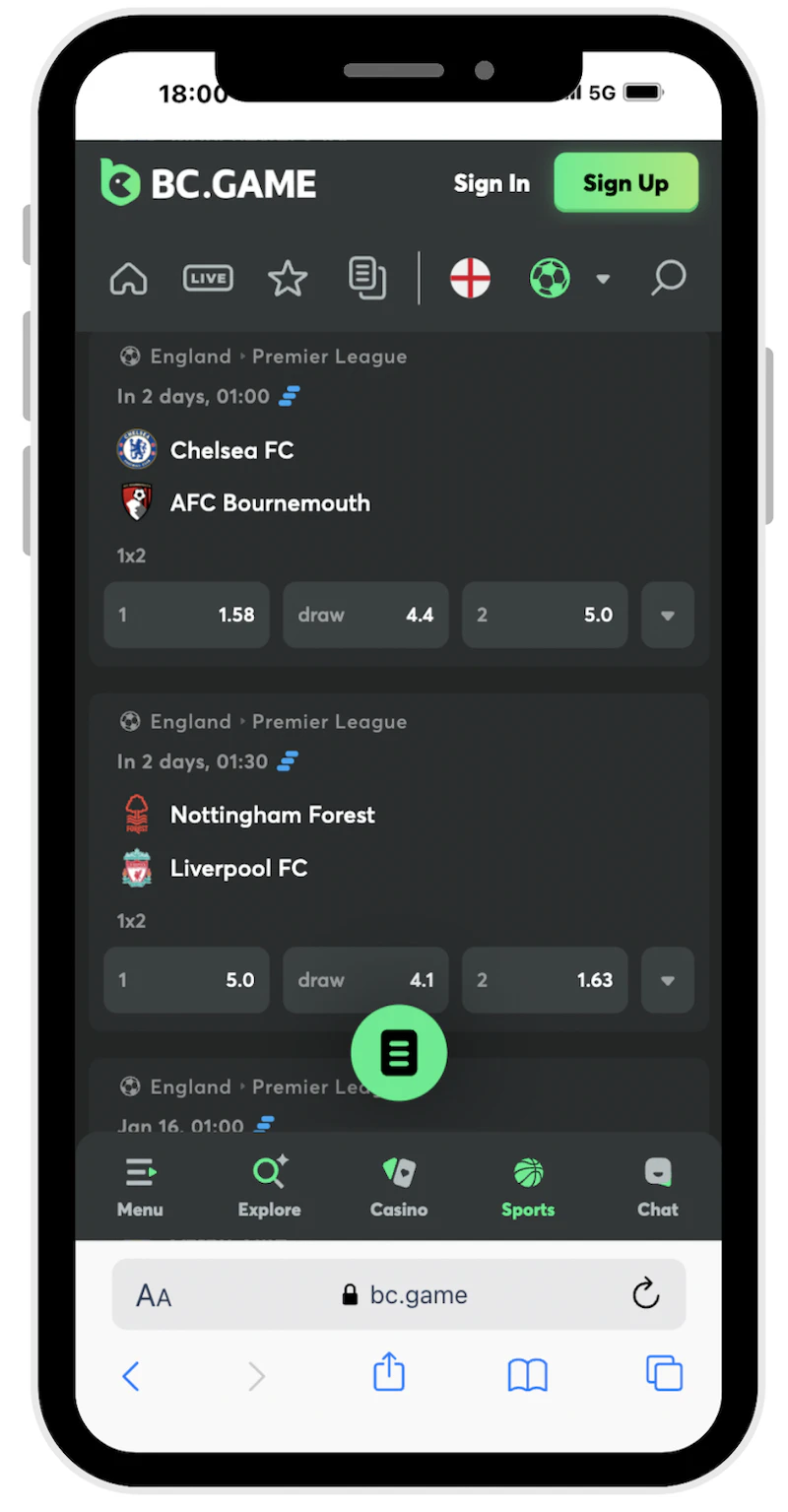 BC.Game App (high football betting odds)