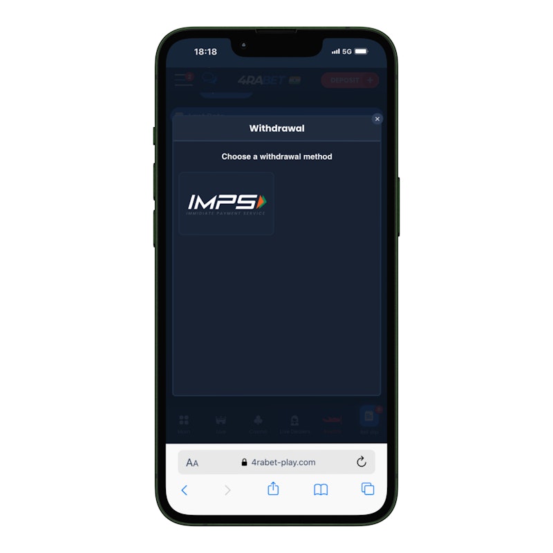 In this case, you simply need to click on IMPS to be able to withdraw your money and receive your winnings instantly.