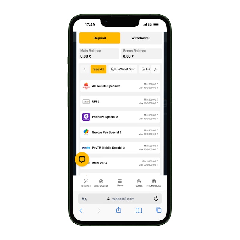 However, Rajabets allows you to deposit with several other UPI options, such as Google Pay, PhonePe, WhatsApp Pay, Amazon Pay, Cred.