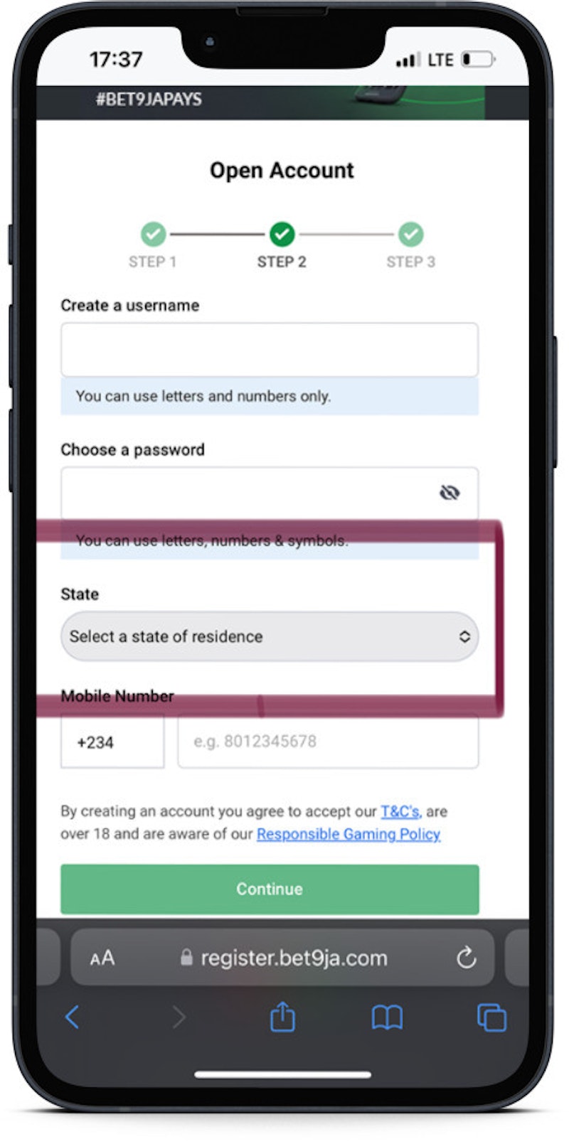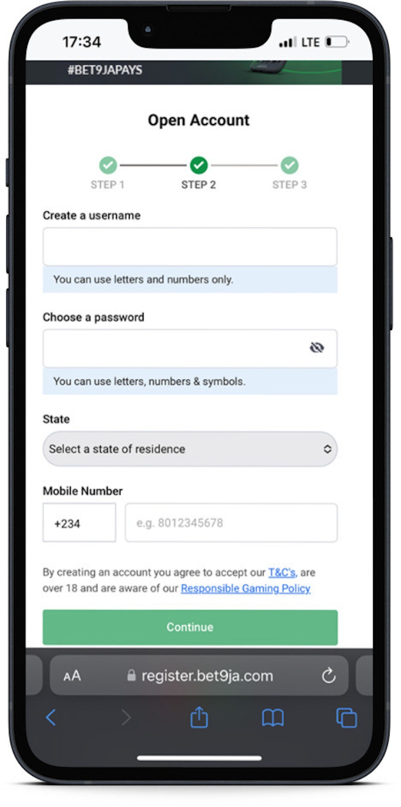 BET9JA MOBILE REGISTRATION