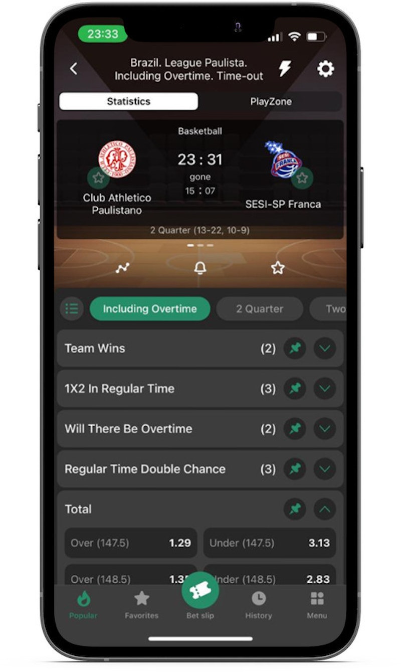 A regular basketball game on the Betwinner app comes with multiple betting options that very few operators can match.
