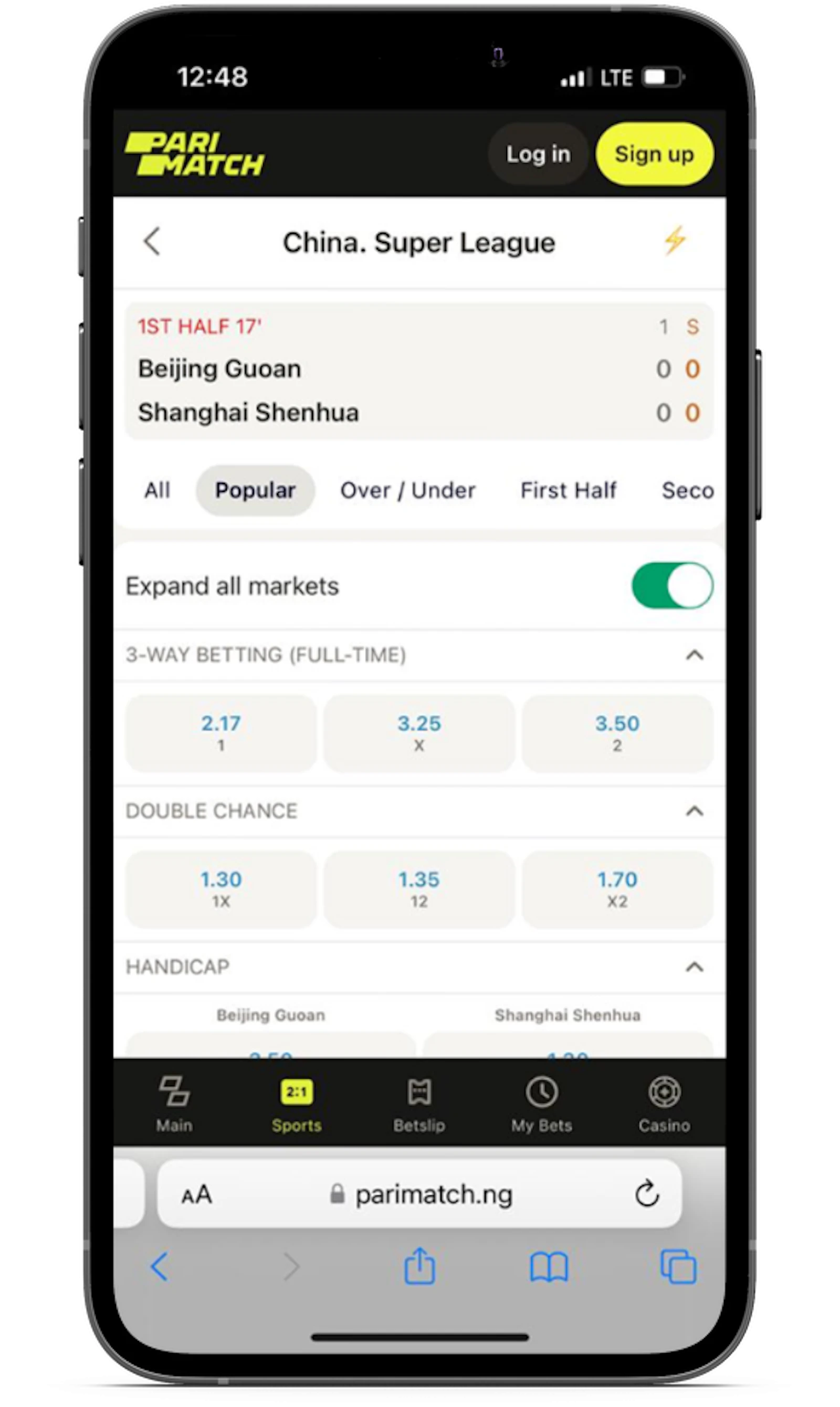 Parimatch mobile has an impressive football section that can stand toe to toe with the best in the business.