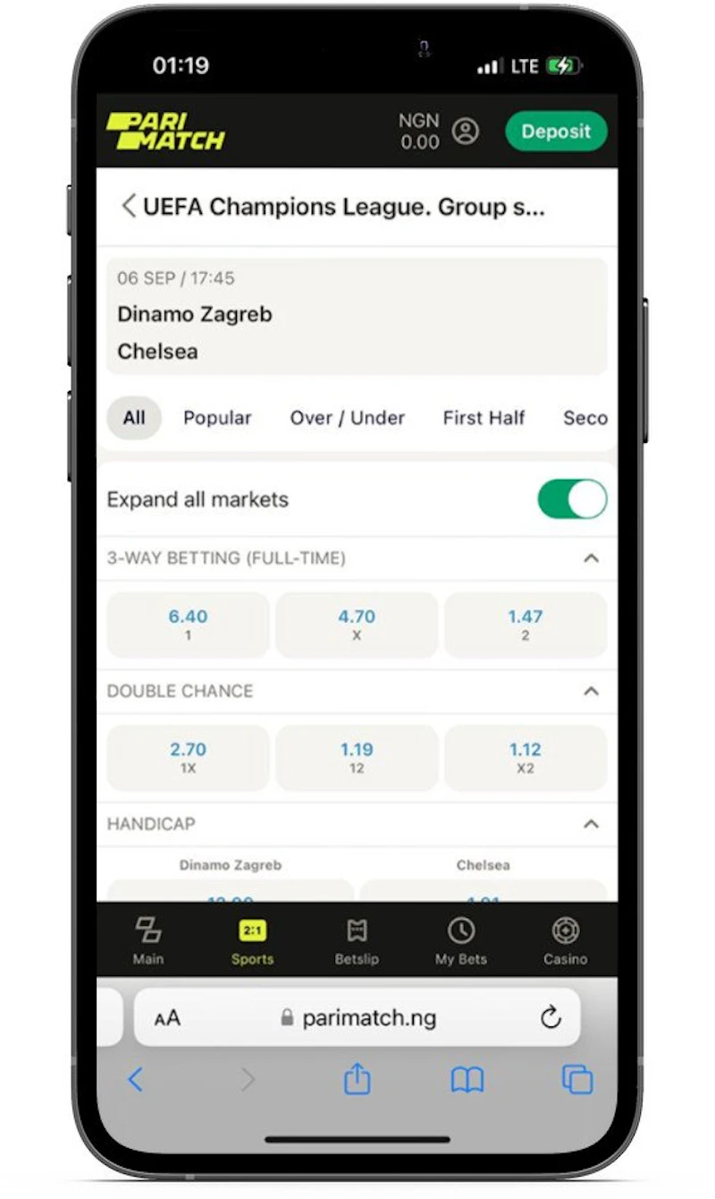 Parimatch however has an Android App and makes up for the lack of an iOS app with a solid Nigerian mobile website which is easy to use.