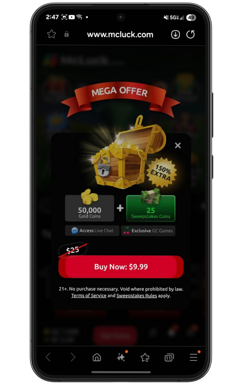 The big number you’ll notice is the Gold Coins, which are meant for fun and hold no cash value. With each purchase, though, you’ll also receive Sweepstakes Coins. These can be used in eligible games and give you a chance to win real cash prizes. Some offers even include bonus Sweepstakes Coins for extra value.