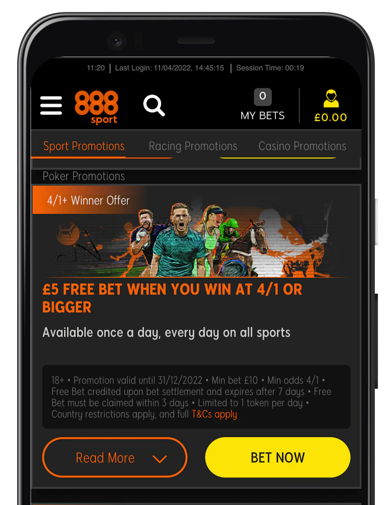 Click here to see more info on 888sport free bets in the promotions section of our 888sport app review.