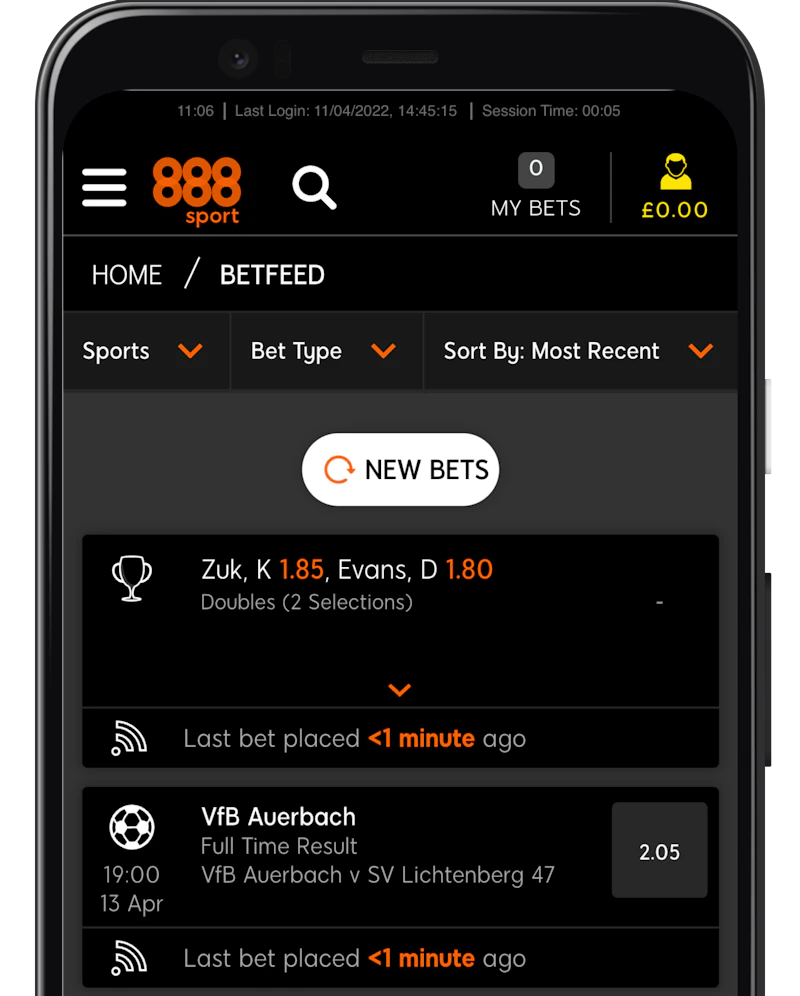 It couldn't be simpler to find your way around the 888sport app and features like Betfeed simplify bet searches with neat filters by sport, bet type and sorting method (most recent, most popular, or start time).
