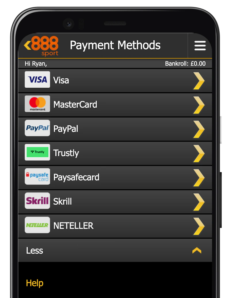 888sport ticks a number of boxes here, with payments via major e-wallets like PayPal, Skrill, NETELLER and ApplePay all supported.