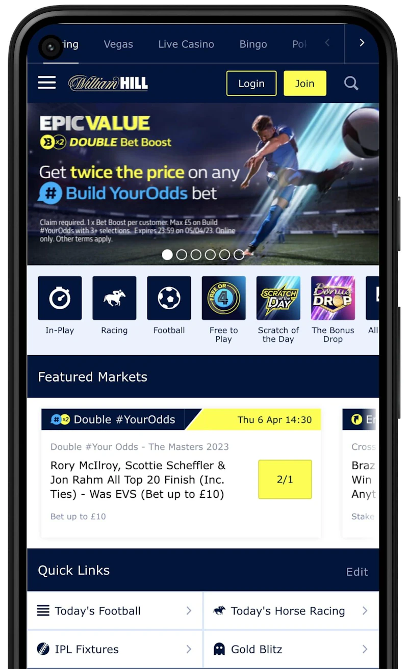 Upon signing into the William Hill app, you can navigate to your selected market and see upcoming races and fixtures.
