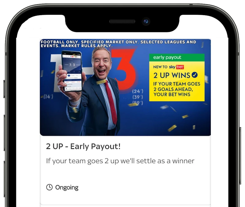 Sky Bet's 2-Up promo meant that if your team takes a two-goal lead at any stage, Sky Bet will immediately settle your bet as a winner and you will receive an early payout.