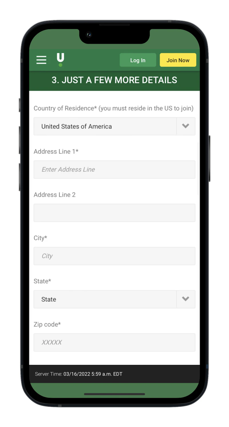 - Country of Residence (you must reside in the US to join)
